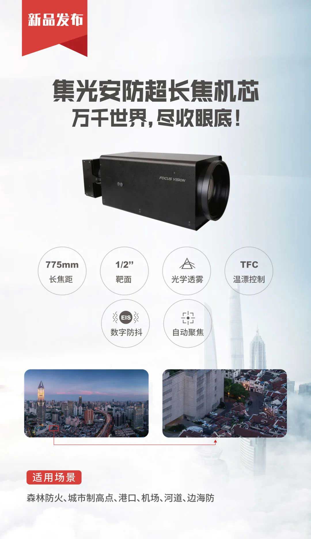 顺应安防监控市场数字化、网络化、高清化、智能化的发展趋势,yabo.com鸭脖安防重磅推出大倍率长焦机芯,集成37倍光学变焦超高清可见光镜头,搭配SONY最新传感器,为森林防火、城市制高点、港口、机场、河道、边防、海防防控提供视频图像整体解决方案。